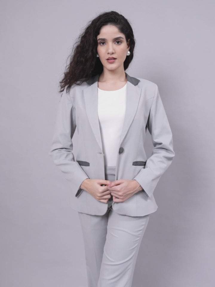 Light Grey Power Suit With Sleek Contrast Detailing For Effortless Sophistication