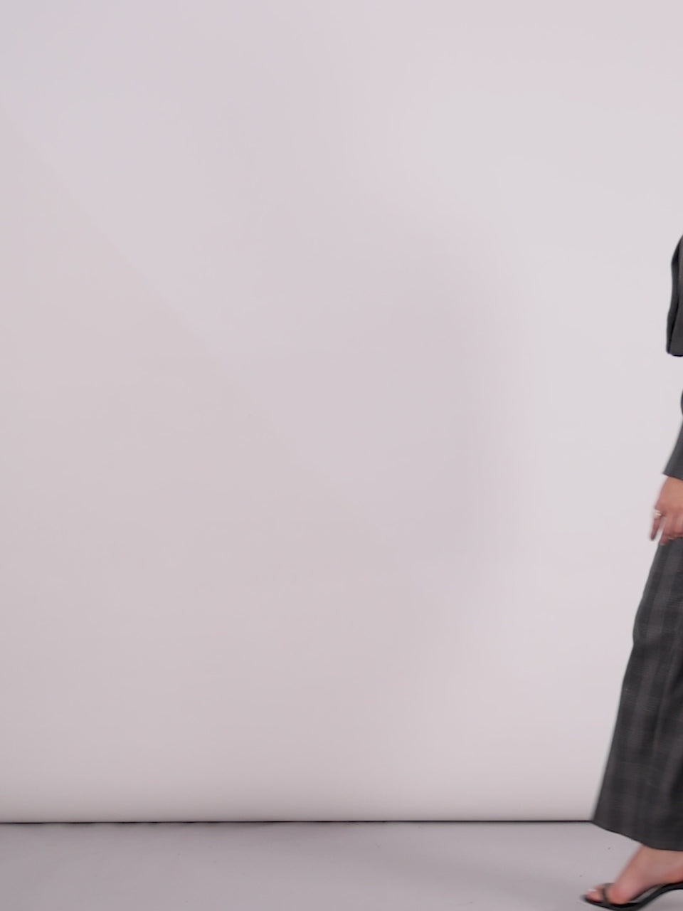 Introducing our Chic Monochrome Stylish Notched Lapel Checkered Crop Blazer with Trouser, a fresh take on formal attire. This eye-catching grey check pattern adds a modern twist to the classic silhouette. The single-breasted front and long sleeves create a refined look, while the cropped design adds a contemporary edge. Perfectly paired with tailored trousers, this ensemble is ideal for making a sophisticated statement at any formal occasion. Elevate your wardrobe with this stylish blend of tradition and trend.