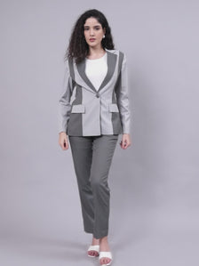 A sleek two-tone grey tailored suit featuring a sharp single-button blazer and slim-fit trousers—crafted for modern elegance and effortless confidence.