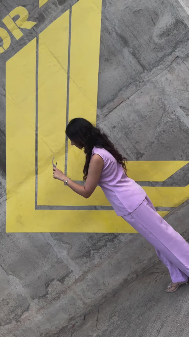 Women Lavender Button Detail Tailored Waistcoat With Loose Fit Trouser Stretchable Co-ord Set